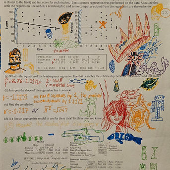 11 by 17 inches, paper, made with marker, pencil, pen, colored pencil, and paint. (many diffrent media to make a more chaotic and disconnected feel)